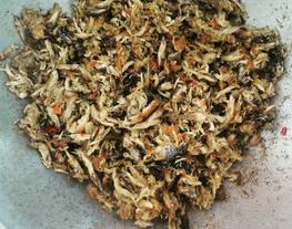 Bumbu pokok diantaranya bawang merah dan putih, lengkuas, kunir, jahe, dan kencur. 3 batang serai, ambil bagian putihnya, diiris halus. Disajikan dengan nasi dan taburan kacang goreng, tampak menggiurkan, kan? Daging ikan dicincang, dibumbui, kemudian dililit ke batang daun serai. Tumis sampai tercium wangi (± 3 menit).
